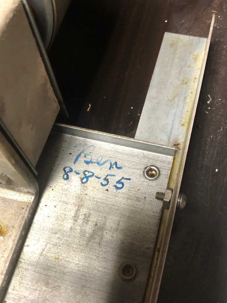 As I went through the generator, the vibrato scanner revealed a slight but persistent bearing noise that I couldn’t get to go away, even with disassembly and thorough cleaning and oiling. So I found another scanner up in the wilds of Humboldt County, and the bearing noise was gone. I also discovered a relic of this organ’s provenance: